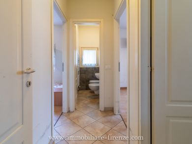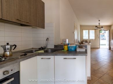 A SOLI 10 KM DAL CENTRO DI BAGNO A RIPOLI (nei pressi del paese di San Donato in collina - TROGHI) proponiamo in NOSTRA ESCLUSIVA in villetta quadrifamiliare di recente costruzione, vicino a tutti i servizi e costruita con i criteri per elevata classe energetica ‘C’ e senza nessun condominio, ampio e luminosissimo 4 vani libero su tre lati, di superficie circa 85 mq sviluppato al piano terreno rialzato con ingresso indipendente da giardino/resede privato di circa 30 mq; Vani composti da: soggiorno, cucina abitabile con uscita su ampio loggiato di circa 40 mq, due camere, 2 bagni finestrati e ripostiglio. Completa la proprietà un garage doppio di circa 30 mq (già predisposto per un collegamento interno alla casa con scala a chiocciola dal ripostiglio). La classe energetica ‘C’ è stata raggiunta grazie all’installazione di cappotto termico sulle pareti e sul tetto, pannelli solari termici ad integrazione della caldaia e infissi in PVC triplo vetro. IMPORTANTE! questa classe energetica permette ai futuri acquirenti di poter accedere al cosiddetto MUTUO GREEN con elevato risparmio sui tassi di interesse della banca. Allacciamenti alle utenze pubbliche quali metano e Publiacqua. L’immobile è molto luminoso con la doppia esposizione e anche grazie alle dimensioni di porte e finestre. Accessoriato di impianto d’allarme. Un’altro punto di forza di questa casa è la vicinanza a tutti i servizi principali quali scuole, asilo, banca, ufficio postale, alimentari, fermata bus per Firenze, bar, centri sportivi e parchi pubblici. Ottimo rapporto qualità/prezzo. Guarda il VIDEO TOUR all’interno dell’annuncio.
